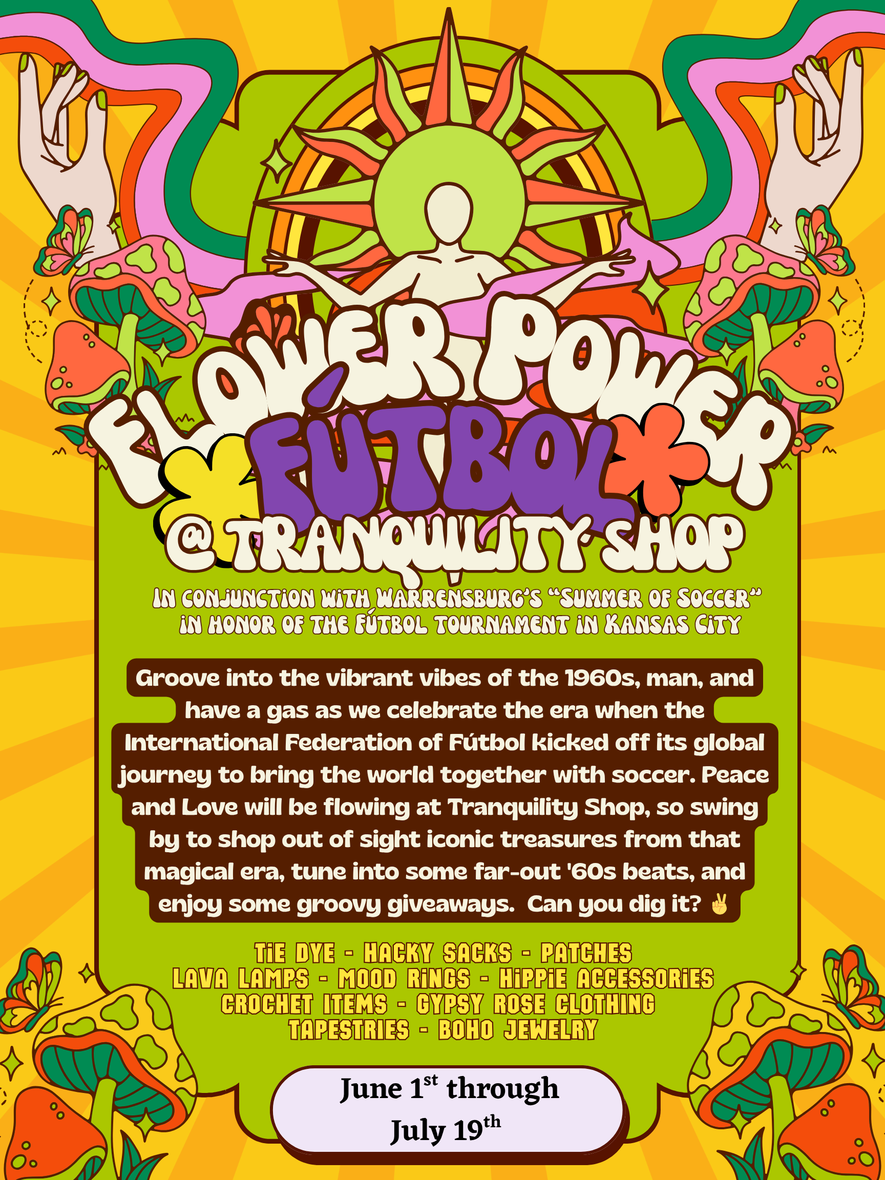 And feel free to don your groovy threads and let your inner flower child shine while you shop. Don’t forget those rad accessories—beaded necklaces, headbands, and handmade jewelry. Wear what makes your heart sing.